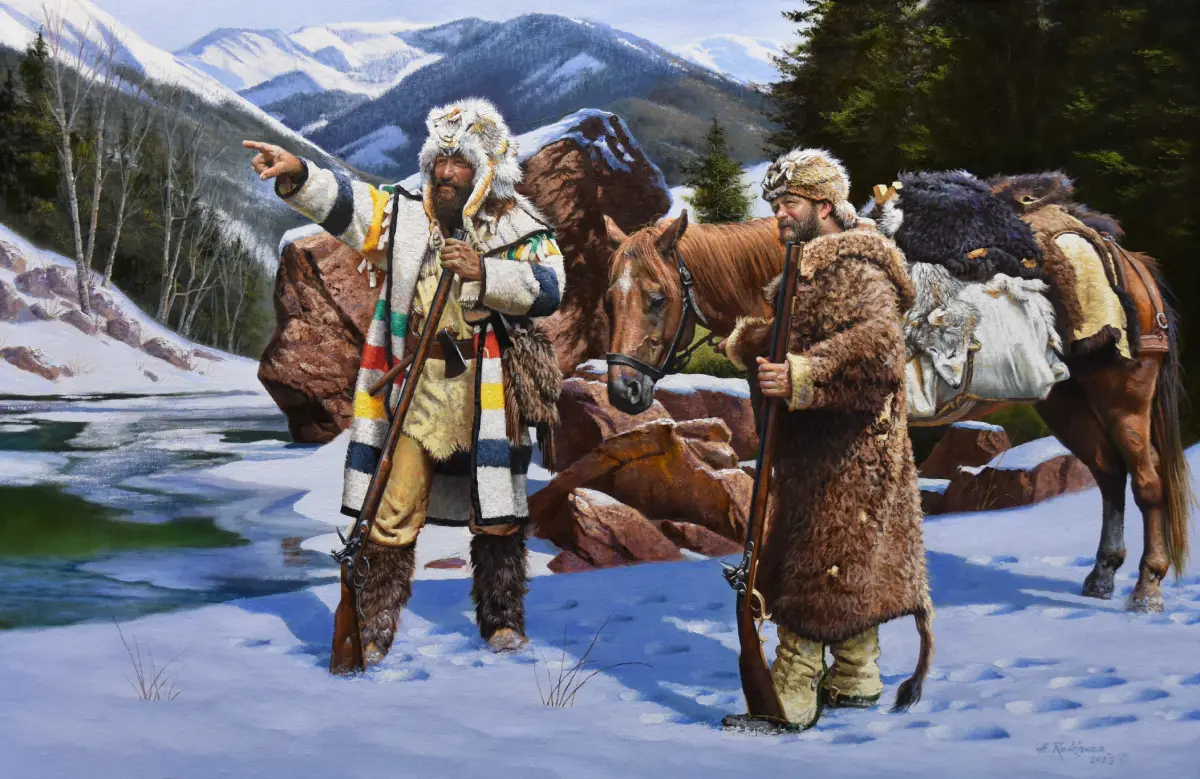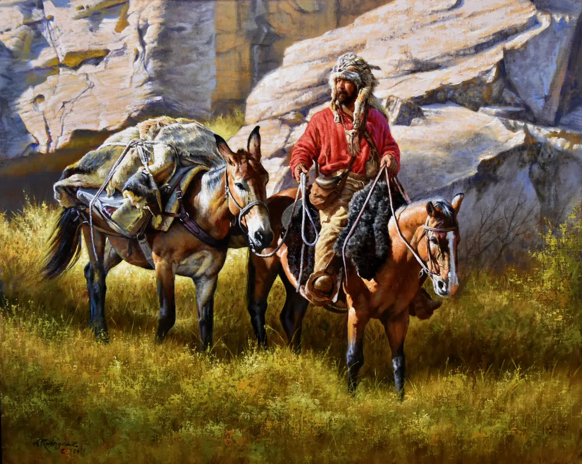 Mountain Men Taller Tales Oil 24” x 36” "Winter Challenge" Oil 30” x 20” "The Explorers" Oil 24” x 36” "In Wild Territory" Oil 14” x 11” "Mountain Man" Oil 14” x 11” "By Rivers and Valleys" Oil 24” x 30” "Free Spirits" 36" x 24" OilSOLD "Down From The High Country" Oil 24” x 36” "lone trapper" 24" x 36" OilSOLD "Many miles to the rendezvous" 30" x 40" OilSOLD "Free Trapper" 18" x 24" OilSOLD "Contemplating" 16" x 12" OilSOLD "Observed" 20" x 30" OilSOLD "Lonely Trapper" 24" x 30" OilSOLD Please write to Alfredo Rodriguez for new images and information about the paintings for upcoming shows. Also follow me at Thank you Alfredo